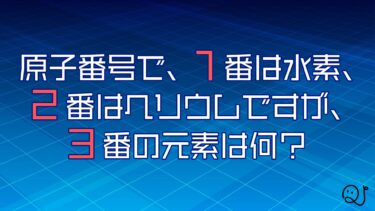 - ①原子番号で、1番は水素、2番はヘリウムですが、3番の元素は何でしょう?