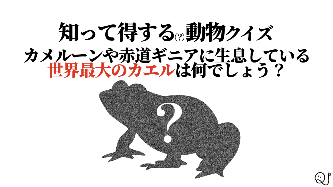 - ④その名前は旧約聖書に出てくる巨人ゴリアテに由来している、カメルーンや赤道ギニアに生息している世界最大のカエルは何でしょう?