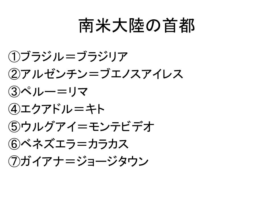 南米大陸の首都を答えなさい