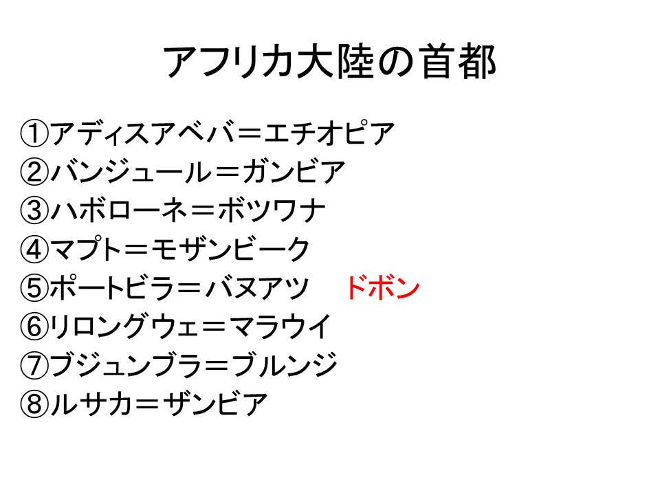 アフリカ大陸の首都を選びなさい。ただし、一つだけ違うものがあります。