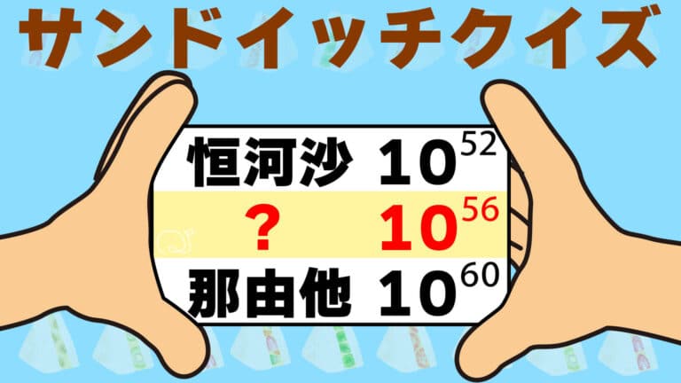 数の単位。〈?〉に入るのは? 恒河沙(10の52乗)→〈?〉(10の56乗)→那由他(10の60乗)