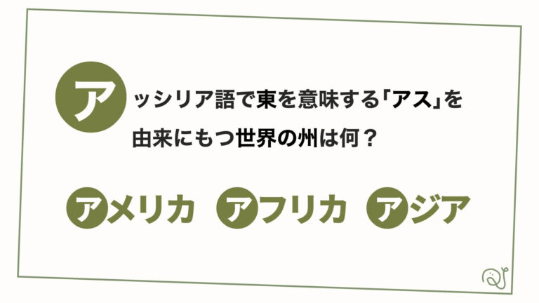 アッシリア語で東を意味する「アス」を由来に持つ世界の大州の一つって何?