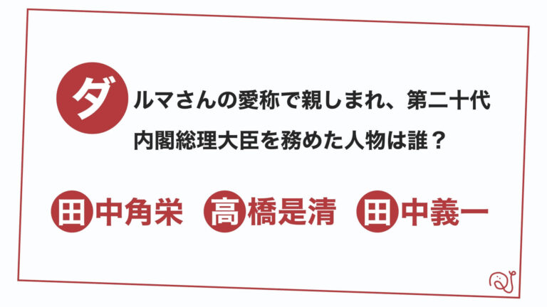 「ダルマさん」の愛称で親しまれ、第七代日本銀行総裁や第二十代内閣総理大臣を務め、二・二六事件で暗殺された人物は誰でしょう?