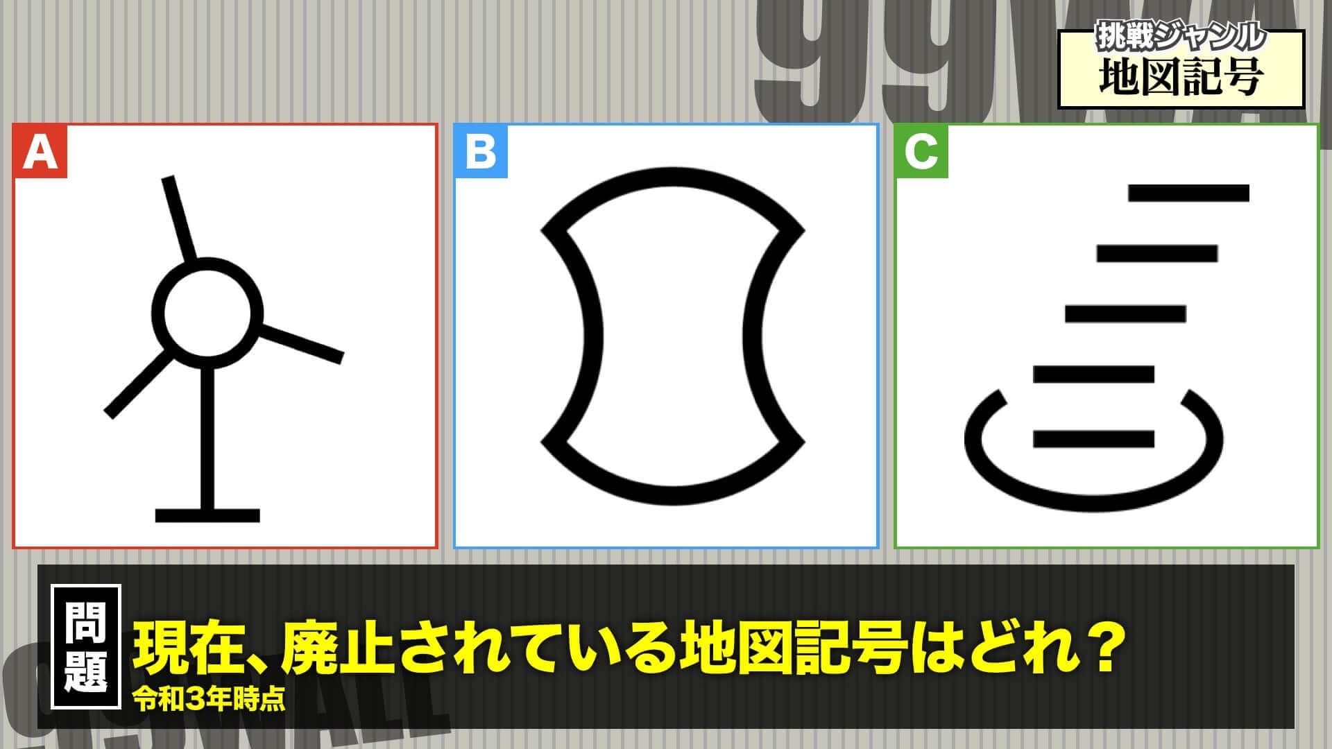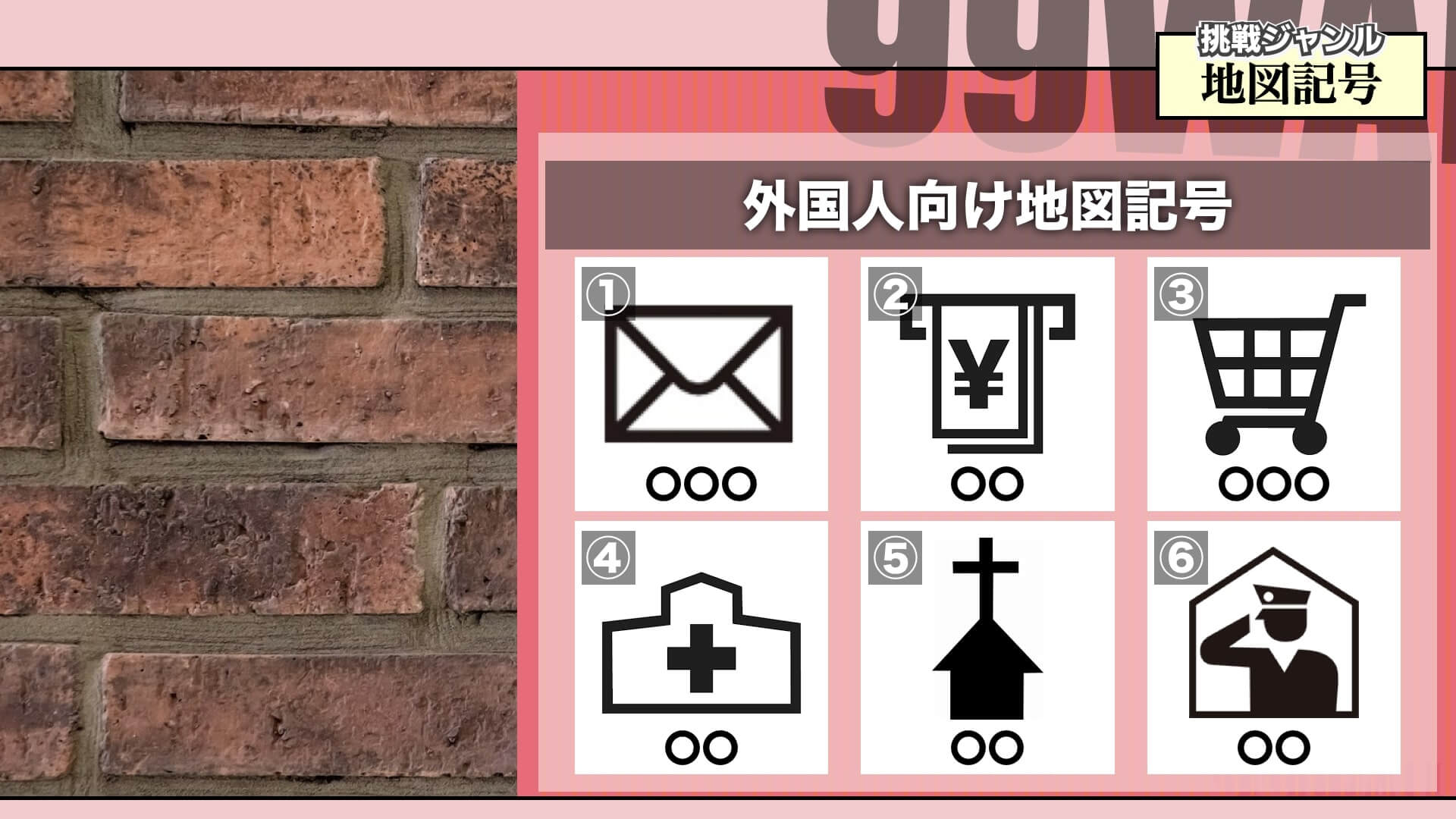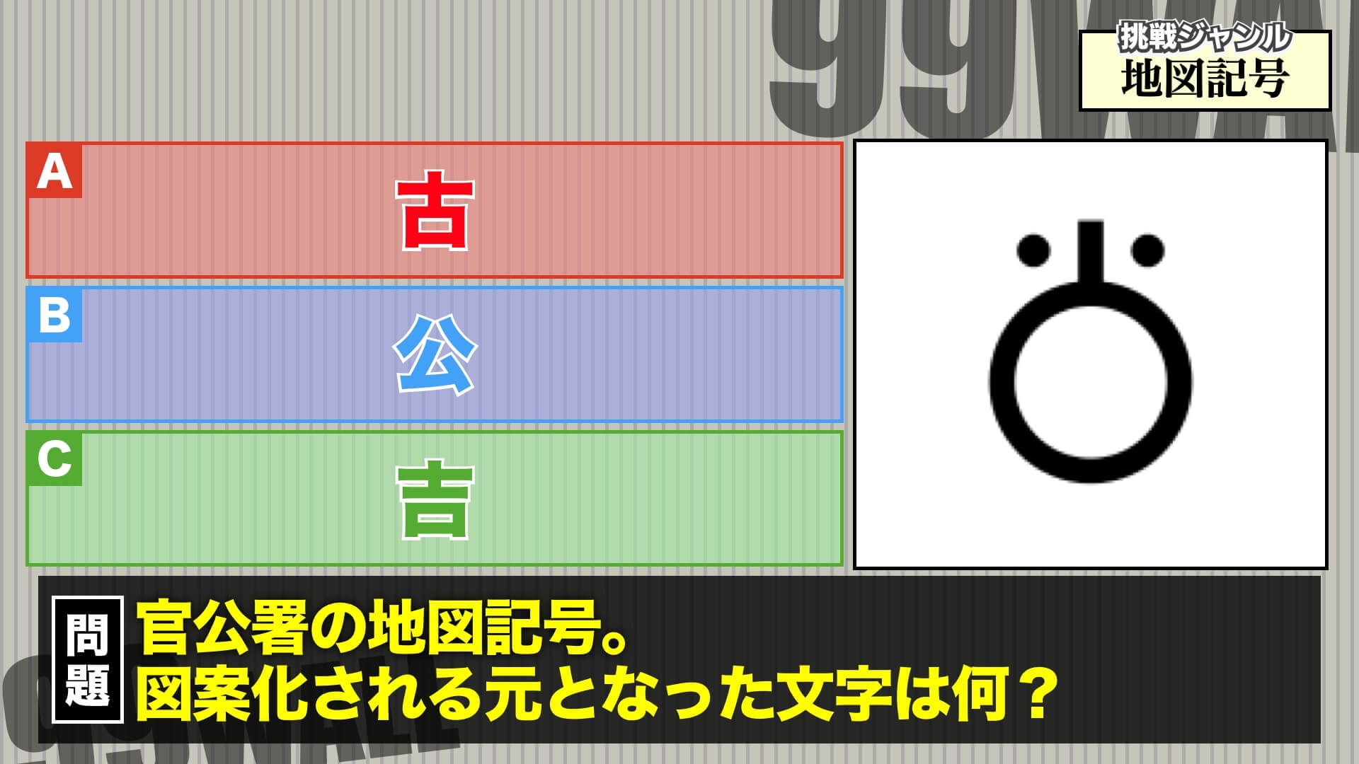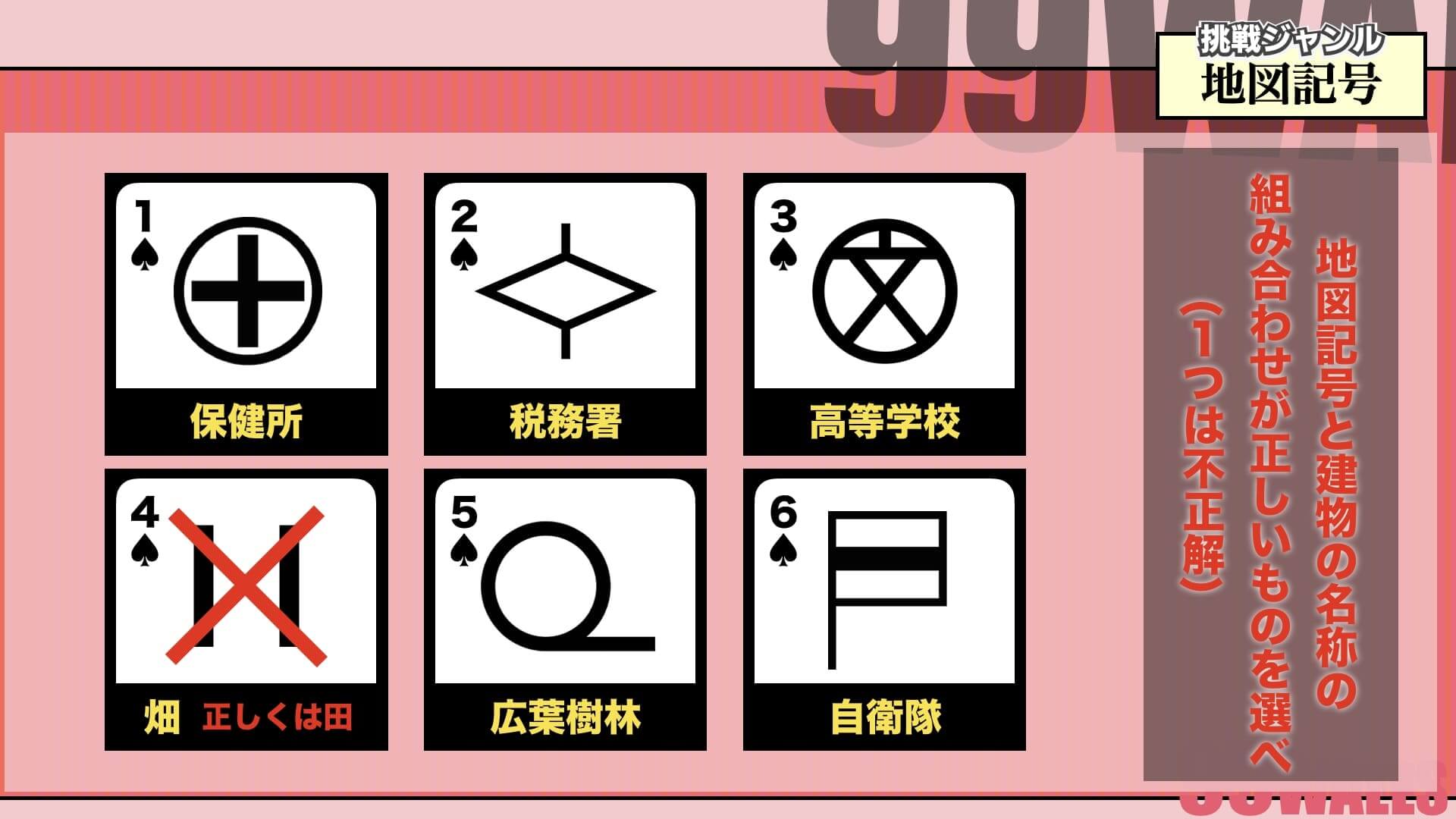 皆さんにはこれからジャンル「地図記号」で99人の壁に挑戦してもらいます!!