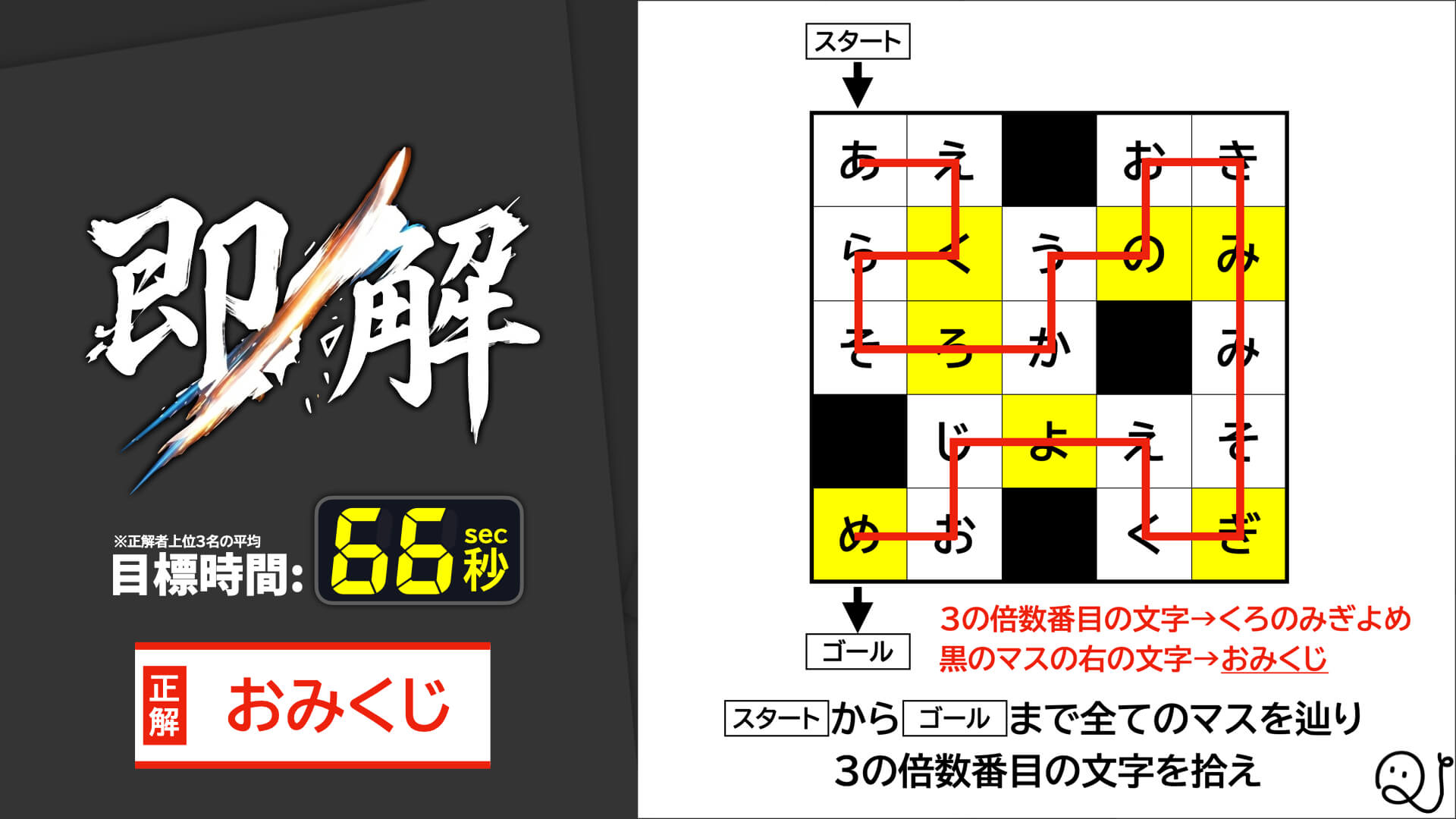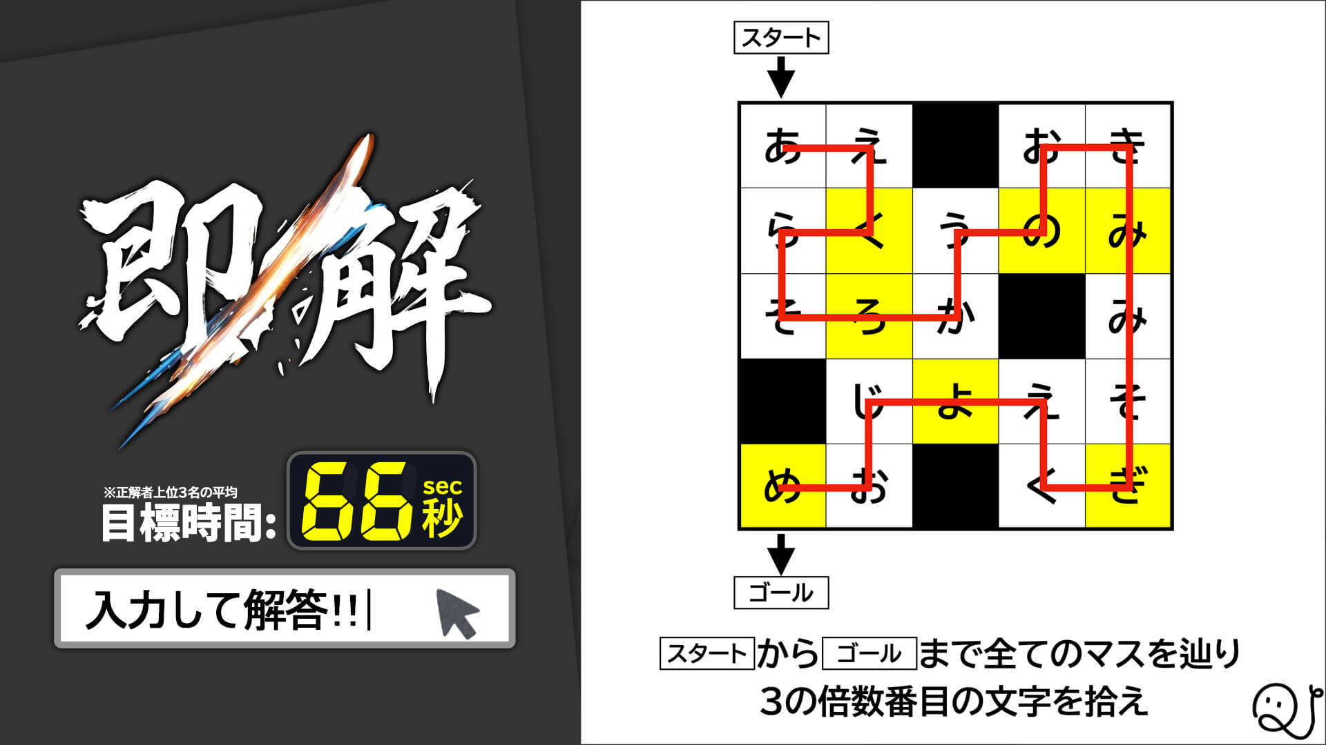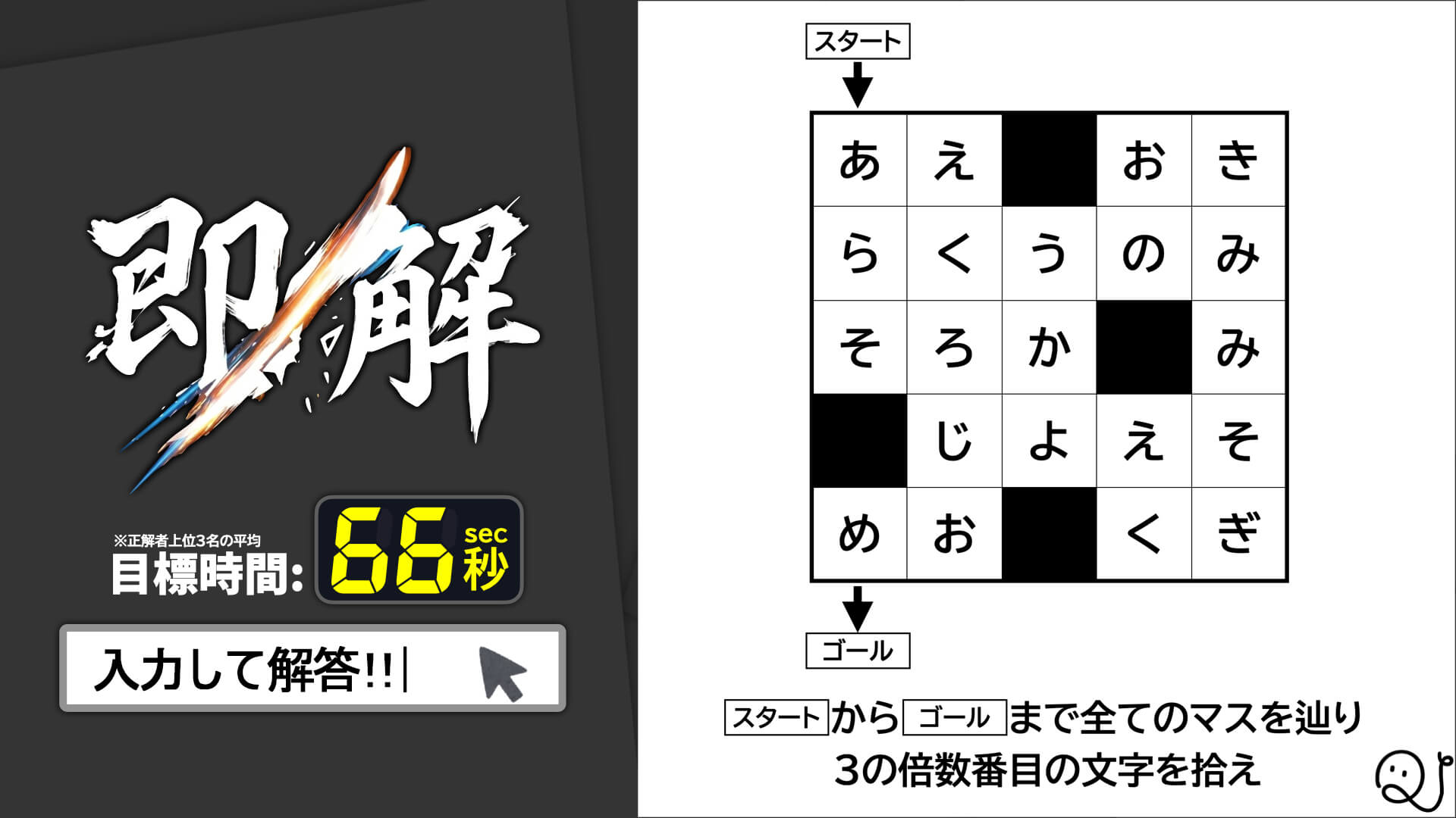 この問題に正解したトップ3名の平均タイムは……66秒。