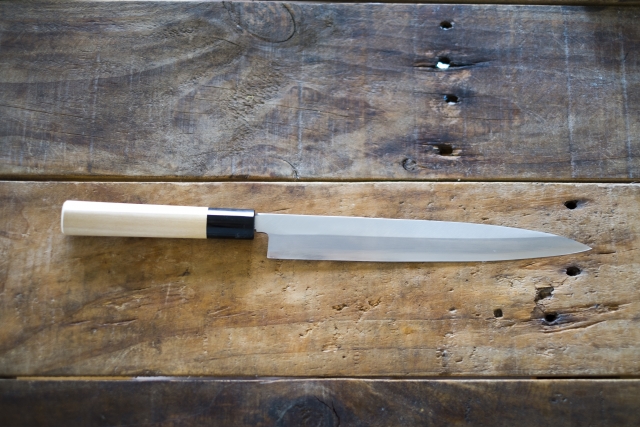 - 刺身包丁ともいわれる、幅が細く先がとがっているもの
