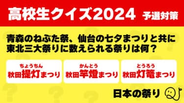 今まで出してきた記事から、今回の高校生クイズ2024のテーマ「日本」に関するクイズを集めました。 1次予選対策問題として解いてみてください! 今回は「日本の祭り」に関する問題です。 [streamquiz id="976"] […]