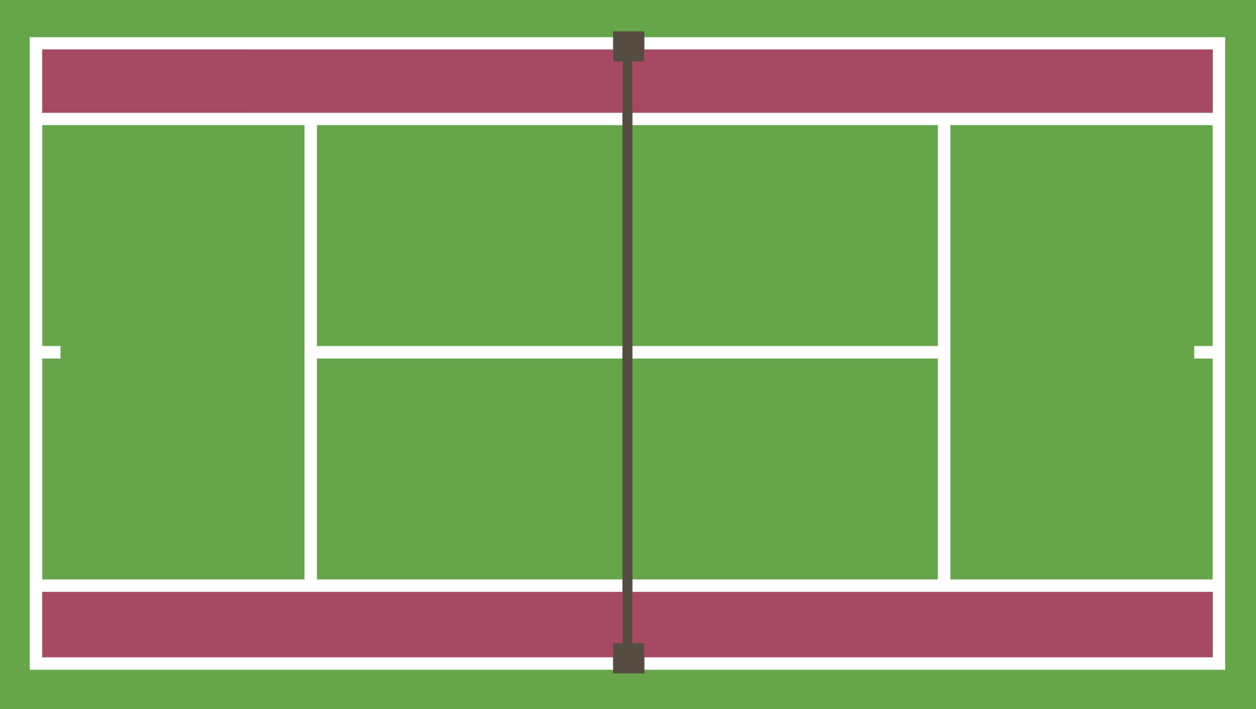 ④テニスで、シングルスコートのサイドラインとダブルスコートのサイドラインの間の区域を何というでしょう?(画像の赤い区域)