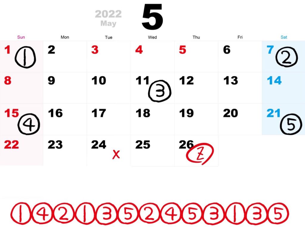 開催日が5月26日だったので、今月のカレンダーを使用して出題しました!