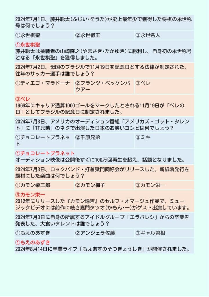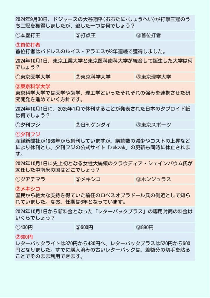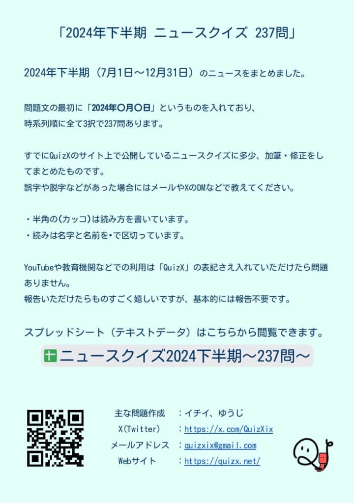 ①2024年下半期(7~12月)ニュースクイズ237問