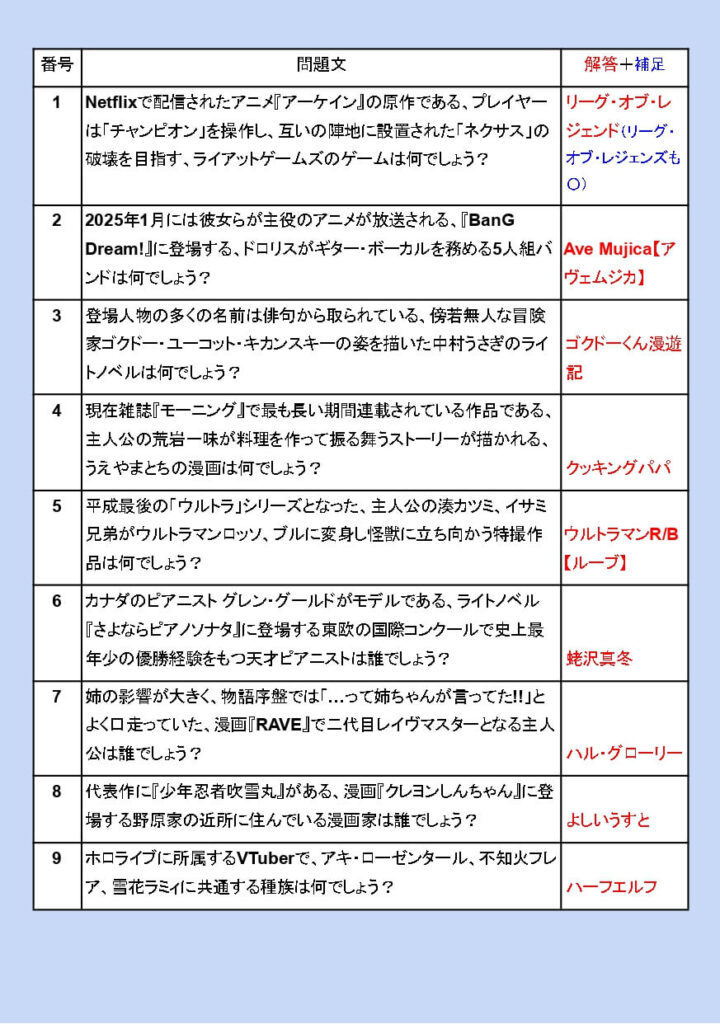 青問題と呼ばれるアニメ・ゲームなどのジャンルをまとめた問題集となっております。全963問です。難易度は高めです。