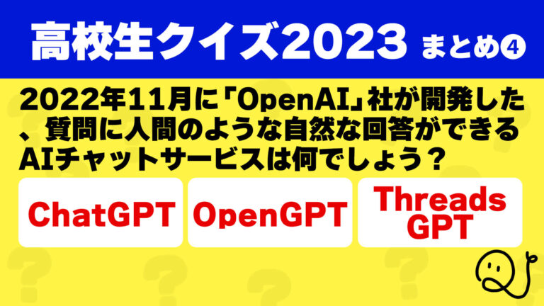 2022年11月に「OpenAI」社が開発した、質問に人間のような自然な回答ができるAIチャットサービスは何?