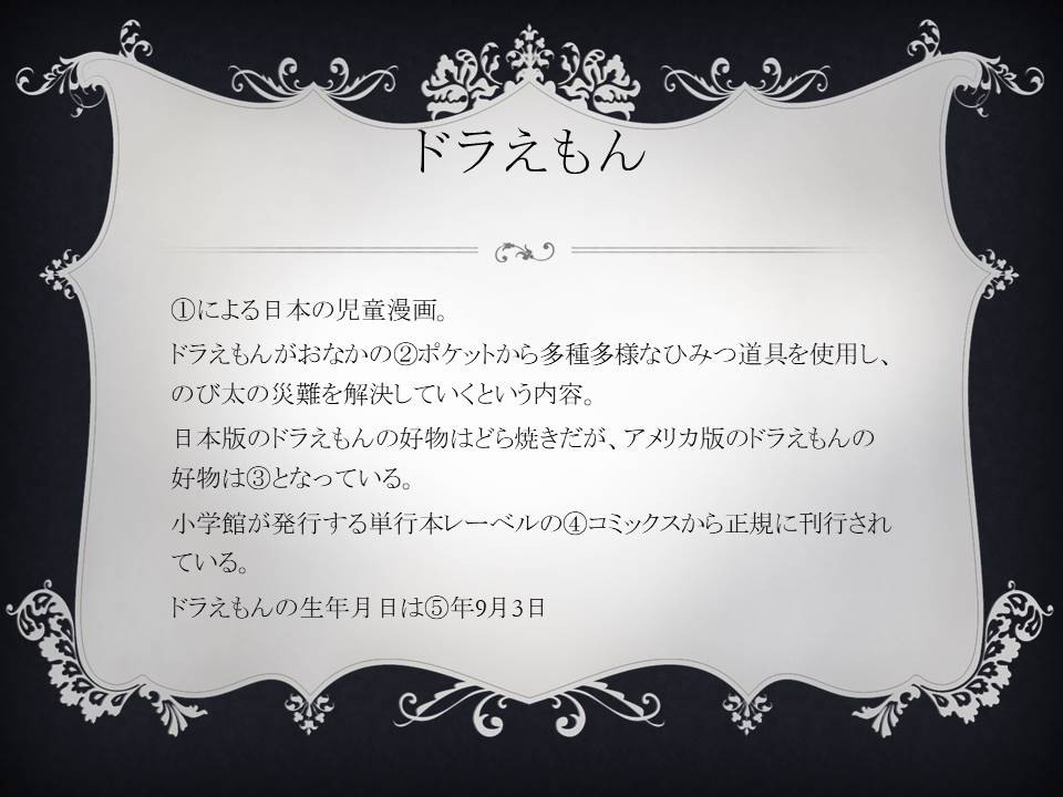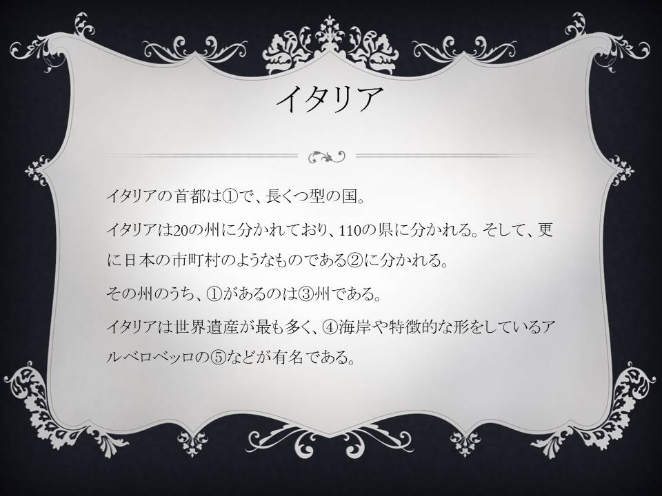 これはあるお題に対して文章が書いてありますが、その中に5つの空欄があります。 それを埋めていただきます。 今回は3問出題します。 答は画像の下にある数字をクリックしていただくと見れるようになっています。 それでは、どうぞ!