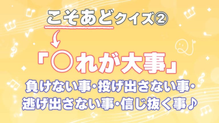 ♪負けない事・投げ出さない事・逃げ出さない事・信じ抜く事♪ 『○れが大事』
