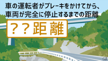 ②車の運転者がブレーキをかけてから、車両が完全に停止するまでの距離を何というでしょう?